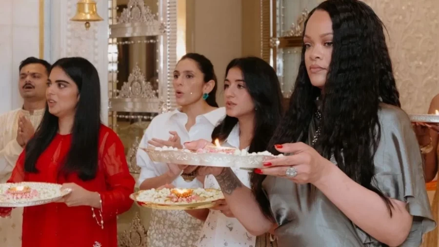रिपोर्ट्स के अनुसार, रिहाना और उनकी टीम का एंटीलिया में भव्य स्वागत किया गया। इस दौरान ईशा अंबानी, श्लोका मेहता, राधिका मर्चेंट और अनंत अंबानी ने उनकी अगवानी की और घर में प्रवेश के समय रिहाना का स्वागत पारंपरिक नृत्य के साथ किया गया, जो इस मुलाकात का एक विशेष आकर्षण रहा। अपनी इस विजिट के दौरान रिहाना ने अंबानी परिवार के साथ आयोजित एक विशेष पूजा में भी हिस्सा लिया और श्रद्धापूर्वक आरती की।