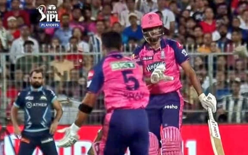 दरअसल, राजस्थान रॉयल्स की पारी की आखिरी गेंद नो बॉल थी, जिस पर जोस बटलर रन आउट हो गए। ऐसे में गेंद फ्री हिट रही तो नए बल्लेबाज आर अश्विन क्रीज पर आए। अश्विन को यश दयाल ने वाइड गेंद डाली। उधर रियान पराग अपनी क्रीज छोड़कर रन लेने के लिए दौड़ पड़े। उन्होंने ये भी नहीं देखा कि अश्विन क्रीज से हिले तक नहीं, जबकि गेंद विकेटकीपर रिद्धिमान साहा के दस्तानों में सीधी चली गई थी।