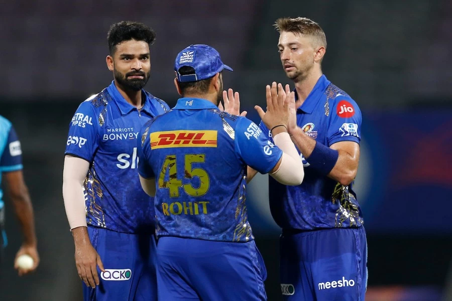 MI: ईशान किशन (wk), रोहित शर्मा (c), टिम डेविड, सूर्यकुमार यादव, तिलक वर्मा, कीरोन पोलार्ड, ऋतिक शौकीन, डेनियल सैम्स, जसप्रीत बुमराह, कुमार कार्तिकेय, रिले मेरेडिथ।