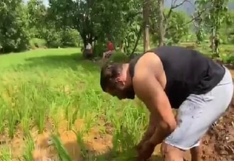 मुंबई। बॉलीवुड के सुपरस्टार सलमान खान (Salman Khan) लॉकडाउन की शुरुआत से ही अपने पनवेल स्थित फार्महाउस में रह रहे हैं। बॉलीवुड के दबंग यानी सलमान खान को इन दिनों किसानी करने का शौक चढ़ा है। पिछले कई दिनों से वह खेत पर काम करते हुए अपनी फोटो सोशल मीडिया पर शेयर कर रहे हैं। अब उन्होंने खेत में धान रोपते हुए वीडियो ट्वीट किया है। वीडियो शेयर करते हुए सलमान ने लिखा है, ''Rice plantation done''।