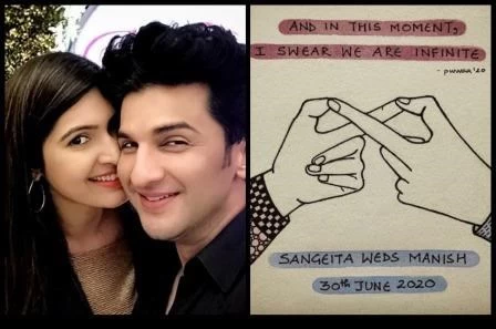 by Newshelpline . Mumbai | टेलीविजन एक्टर मनीष रायसिंघानी और संगीता चौहान आज यानि की 30 जून को शादी से बंधन में बंध गए हैं। दोनों एक दूसरे को काफी समय से डेट कर रहे थे और अब दोनों ने शादी करने का फैसला लिया है। हालांकि शादी में उनके कुछ करीबी लोग ही उपस्थित रहे। लॉकडाउन के कायदों का पालन करते दोनों की शादी गुरुद्वारे में हुई, और दोनों ही अपनी शादी को लेकर काफी एक्साइटेड नजर आए। संगीता ने सोमवार को अपने इंस्टाग्राम अकाउंट पर शादी का इंविटेशन कार्ड शेयर करने के साथ ही अपनी और मनीष की भी फोटो शेयर की है। और साथ ही अपने पति मनीष के लिए एक खास मैसेज भी लिखा।