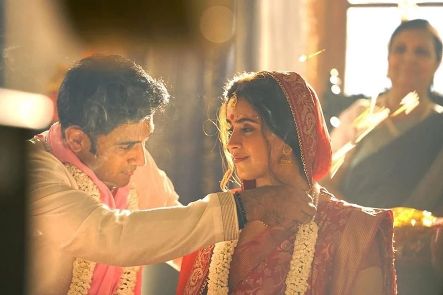 बता दें सान्या मल्होत्रा ने जो फोटो शेयर की है वो अपकमिंग फिल्म "शकुंतला देवी" के एक सीन की है, जहाँ दोनों शादी कर रहे हैं। इस फोटो में सान्या मल्होत्रा बहुत ही प्यारी लग रहीं हैं।