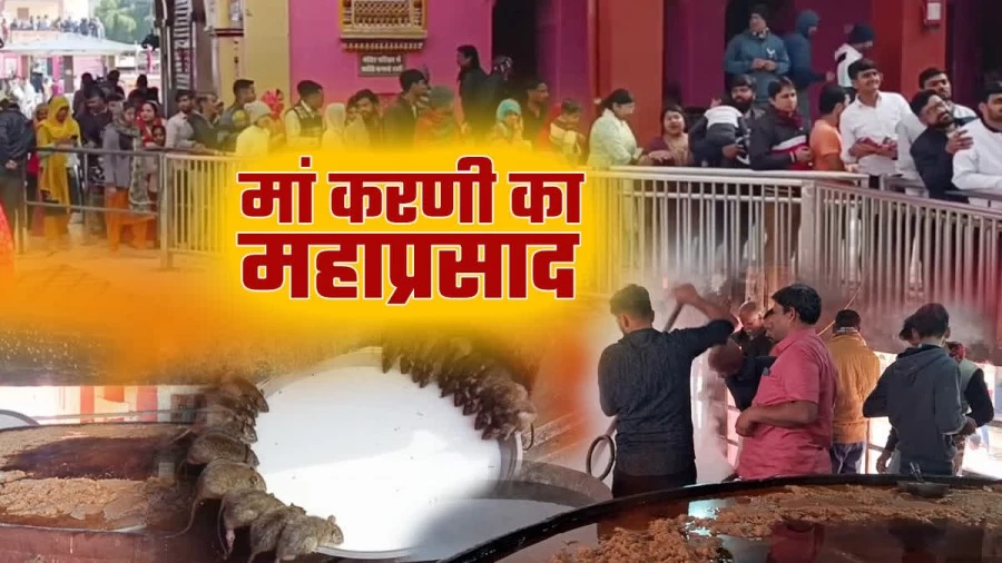 Karni Mata Deshnok: बीकानेर के प्रसिद्ध करणी माता मंदिर में इस बार एक ऐतिहासिक और अभूतपूर्व महाप्रसादी का आयोजन किया जा रहा है। 'सावन भादो कढ़ाई' महाप्रसादी के तहत 17,500 किलो दाल का हलवा तैयार किया जाएगा, जो कि न केवल भारत में बल्कि पूरी दुनिया में सबसे बड़ा भोग माना जा सकता है। यह महाप्रसादी नए साल के पहले दिन श्रद्धालुओं को वितरित की जाएगी। इस अद्भुत भोग के तैयार होने से पहले मंदिर परिसर में विशेष कथा का आयोजन हो रहा है, जिसे श्रद्धालु बड़ी श्रद्धा और आस्था के साथ सुन रहे हैं।