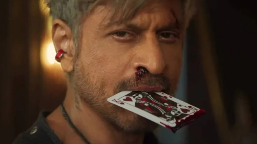 सामने आई पहली झलक में शाहरुख खान का लुक बेहद इंटेंस और प्रभावशाली है। वह पूरी तरह से ग्रे हेयर यानी सॉल्ट एंड पेपर लुक में दिखाई दे। रहे हैं, जो उनकी उम्र के साथ आने वाले अनुभव और गंभीरता को दर्शाता है। उनके कानों में बाली है, जो उनके किरदार में एक रहस्यमय और विद्रोही तत्व जोड़ती है और सबसे चौंकाने वाला विवरण उनकी नाक से बहता खून है, जो उनके एक्शन अवतार की क्रूरता और संघर्ष को दर्शाता है। उनके होठों में दबा एक ताश का पत्ता उनके किरदार की चालाकी और अप्रत्याशितता को। उजागर करता है, जिससे उनका पूरा लुक और भी रहस्यमय और दमदार बन जाता है।