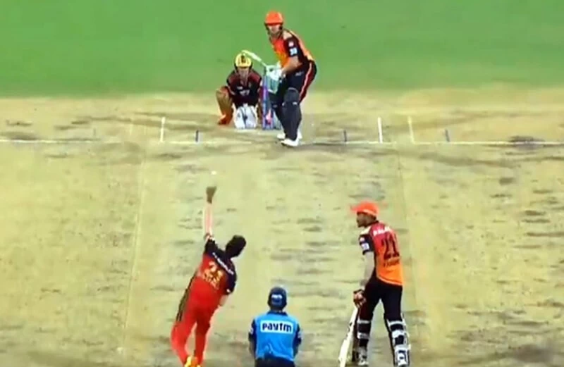 शाहबाज अहमद 17वां ओवर करने आए। उस वक्त हैदरबाद को 24 गेंद पर 35 रन चाहिए थे। क्रीज पर मनीष पांडे और जॉनी बेयरस्टो टिके हुए थे। पहली ही गेंद पर जॉनी बेयरस्टो ने हवा में शॉट उड़ाया, जिसको एबी डिविलियर्स ने पकड़ लिया। उसके बाद दूसरी ही गेंद पर उन्होंने मनीष पांडे को आउट किया। फिर ओवर की आखिरी गेंद पर अब्दुल समद ने शॉट मारने के चक्कर में आउट हो गए।