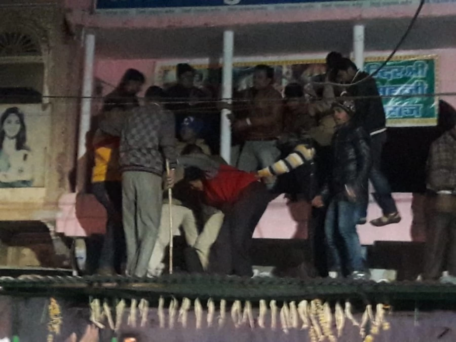 व्यापारी के शोर मचाने पर मौके पर लोगों की भीड़ दौड़ कर आने लगी तो बदमाश अपनी बाइक को मौके पर ही छोड़कर एक गली के नौरे में जा छिपे। इस पर लोगों ने उस नोहरे चारों तरफ से घेर लिया इसके बाद दोनों बदमाश नोहरे की छत से अन्य मकानों की छत को करीब 8 फुट लांघते हुए पुरानी बाजार स्थित मानपुरियो की पुरानी हवेली के साथ ठाकुर जी के मंदिर में जा छिपे। आक्रोशित भीड़ ने बदमाशों को बाहर से घेर लिया बदमाशों ने इस दौरान भीड़ पर पथराव भी किया जिससे भीड़ ज्यादा भड़क गई।