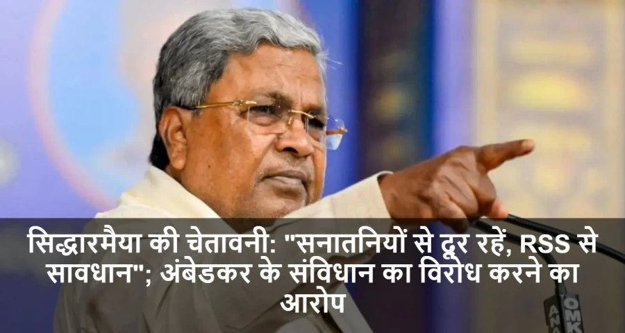 कर्नाटक के मुख्यमंत्री सिद्धारमैया ने शनिवार को एक विवादास्पद बयान में कहा कि लोगों को सनातनियों की संगत से बचना चाहिए और राष्ट्रीय स्वयंसेवक संघ (RSS) से सावधान रहना चाहिए। उन्होंने आरोप लगाया कि RSS ने हमेशा डॉ. भीमराव अंबेडकर और उनके द्वारा बनाए गए भारतीय संविधान का विरोध किया है। मैसूर विश्वविद्यालय के रजत जयंती समारोह में ज्ञान दर्शन भवन का उद्घाटन करते हुए सिद्धारमैया ने यह बात कही।