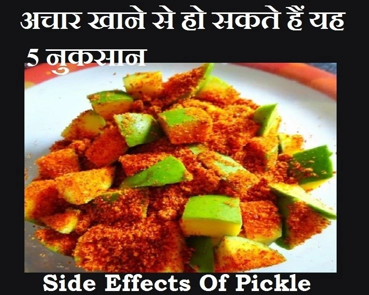 अधिकांश लोग खाने के साथ विभिन्न प्रकार के अचार खाना पसंद करते हैं, अगर आप भी अचार खाने के शौकिन हैं तो आपको मालूम होना चाहिए कि अधिक मात्रा में आचार का सेवन सेहत के लिए समस्याएं भी खड़ी कर सकता है।