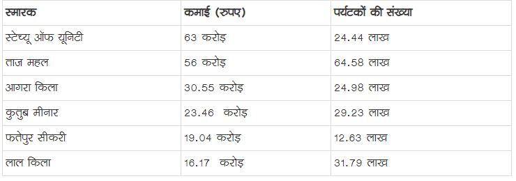 राजपीपला (नर्मदा) | लौहपुरुष सरदार वल्लभ भाई पटेल की 182 मीटर की प्रतिमा स्टेच्यू ऑफ यूनिटी ने कमाई के मामले में ताजमहल को पीछे छोड़ दिया। स्टेच्यू ऑफ यूनिटी ने साल में 63 करोड़ रुपए की कमाई की। वहीं, ताजमहल को फीस के तौर पर सिर्फ 56 करोड़ रुपए ही मिले। आर्कियोलोजिकल सर्वेक्षण ऑफ इंडिया की हालिया रिपोर्ट के मुताबिक,पर्यटकों की तादाद के मामले में ताजमहल अव्वल ही है। ताजमहल देखने के लिए 64.58 लाख लोग पहुंचे। एक साल में स्टेच्यू ऑफ यूनिटी देखने के लिए 24 लाख लोग पहुंचे। इस सूची में कुतुबमीनार (दिल्ली), आगरा किला, लाल किला और फतेहपुर सीकरी भी शामिल है।लाल किला को सालभर में 16.17 करोड़ रुपए की कमाई हुई