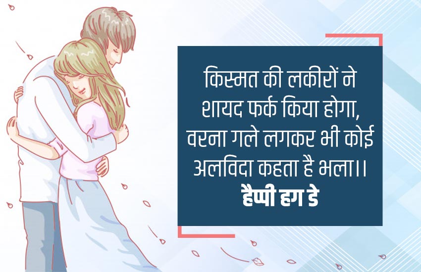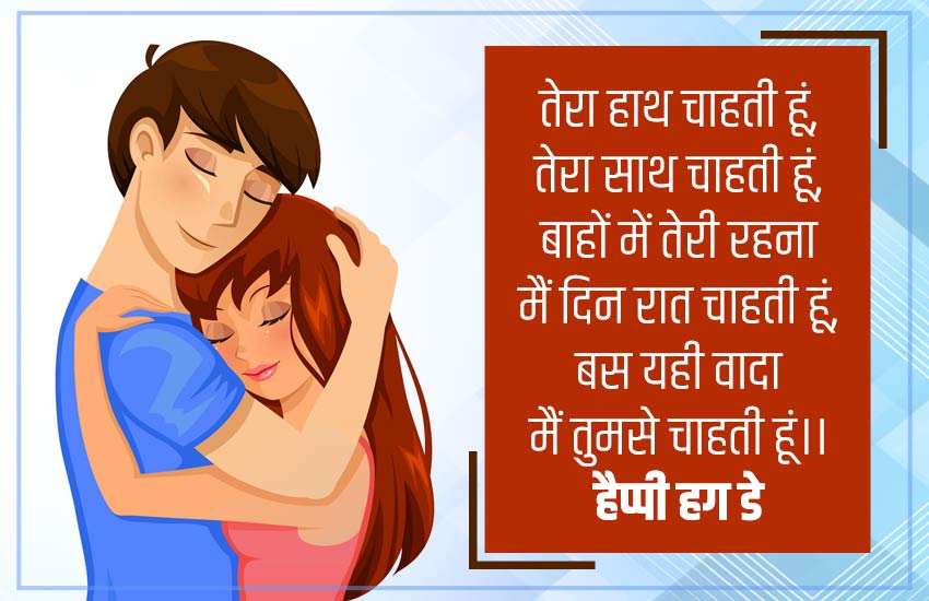 3. बातों–बातों में दिल ले जाते होदेखते हो इस तरह जान ले जाते होअदाओं से अपनी इस दिल को धड़काते होलेकर बांहों में सारा जहां भुलाते हो।हैप्पी हग डे!4. कोई कहे इसे जादू की झप्पीकोई कहे इसे प्यारमौका खूबसूरत आ गले लग जा यारहैप्पी हग डे!