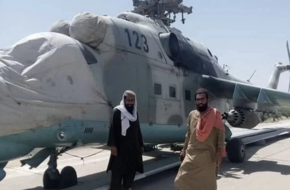 सोशल मीडिया पर वायरल हो रही तस्वीरों और वीडियो में तालिबानी कैडरों की स्थिति १२३ सीरियल किस्म के एमआई-२४वी असॉल्ट हेलीकॉप्टर के बाद दिखाई दे रही है।