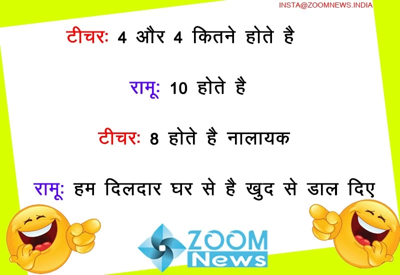 आज का जोक-टीचर: 4 और 4 कितने होते हैरामू: 10 होते है टीचर: 8 होते है नालायक रामू: हम दिलदार घर से है, खुद से डाल दिए