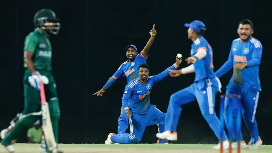 Emerging Asia Cup 2023: भारत और बांग्लादेश के बीच इमर्जिंग एशिया कप का सेमीफाइनल मुकाबला खेला गया। इस मैच में टीम इंडिया ने बांग्लादेश की टीम पर रोमांचक जीत दर्ज करते हुए उन्हें 51 रनों से हरा दिया। टीम इंडिया की जीत में कप्तान यश धुल और निशांत सिंधू का सबसे बड़ा योगदान रहा। भारत ने इस मैच में टीम इंडिया ने पहले बल्लेबाजी करते हुए 49.1 ओवर में अपने सभी 10 विकेट खोकर 211 रन बनाए। दूसरी पारी में टीम इंडिया के पास डिफेंड करने के लिए एक सम्मानजनक स्कोर था। लेकिन बांग्लादेश की टीम इस टारगेट की तरफ काफी तेजी से बढ़ रही थी। लेकिन निशांत सिंधू की शानदार गेंदाबाजी के दमपर भारत ने बांग्लादेश को 34.2 ओवर में 160 के स्कोर पर ऑलआउट कर दिया और टीम इंडिया ने टूर्नामेंट के फाइनल में अपनी जगह बना ली। जहां उनका मुकाबला 23 जुलाई को पाकिस्तान के खिलाफ होगा।