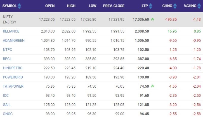 निफ्टी इंडेक्स में ONGC का शेयर 7% नीचे कारोबार कर रहा है। गेल, IOC और इंडसइंड बैंक के शेयर भी 6-6% की गिरावट के साथ कारोबार कर रहे हैं। वहीं, IT सेक्टर के शेयर हल्की बढ़त के साथ कारोबार कर रहे हैं।