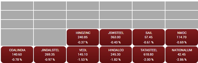 09:29 AM BSE मेटल इंडेक्स में शामिल सभी 10 मेटल कंपनियों के शेयरों में गिरावट है। इंडेक्स में नेशनल एल्युमिनियम और टाटा स्टील के शेयर 2-2% से ज्यादा की गिरावट के साथ कारोबार कर रहा है।