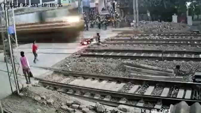इस पूरी घटना का एक वीडियो भी सामने आया है। इस वीडियो में जिस तरह से बाइक के परखच्चे उड़ते दिख रहे हैं, इससे किसी की भी रूह कांप जाएगी। बताया जा रहा है कि यह वीडियो 12 फरवरी का है। इसमें बाइक सवार रेलवे ट्रैक पार करने की कोशिश कर रहा है, लेकिन इससे पहले ही ट्रेन आ जाती है।