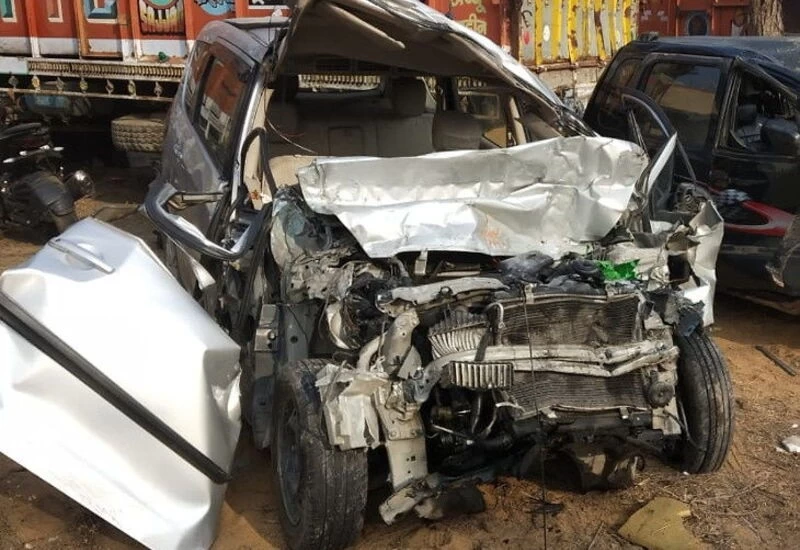 जयपुर | राजस्थान में जयपुर-दिल्ली हाइवे पर बीती रात एक कार अनियंत्रित होकर खड़े ट्रोले में जा घुसी जिससे उसमें सवार तीन लोगों की मौके पर ही मौत हो गई, जबकि दो की हालत गंभीर है। टक्कर इतनी भीषण थी कि कार का अगला हिस्सा ट्रक में फंस गया। मौके पर पहुंची पुलिस ने लोगों की सहायता से कार से शवों व घायलों को निकाला। पुलिस के मुताबिक, हादसा शाहपुरा में बिदारा मोड़ के पास हुआ। वहां एक ट्रक सड़क के किनारे खड़ा था। तभी एक कार उसमें घुस गई।