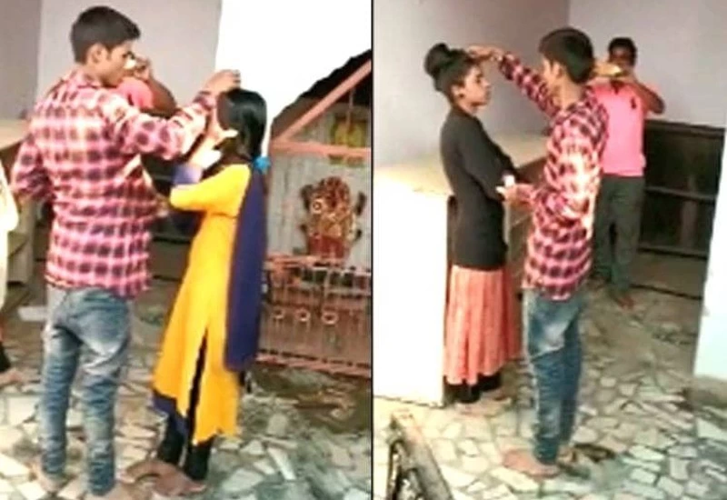 उतर प्रदेश: एक युवक अपनी नई प्रेमिका से शादी करने मंदिर पहुंचा तो वहां उसकी पुरानी प्रेमिका भी पहुंच गई। इस बात पर जब हंगामा होने लगा तो युवक ने दोनों की मांग में सिंदूर भरकर दोनों से शादी कर ली। हैरान कर देने वाला यह वाकया उत्तर प्रदेश के प्रयागराज का है। प्रयागराज में एक अनोखी शादी का मामला सामने आया है जिसमे युवक ने एक लड़की से नहीं बल्कि दो-दो लड़कियों से शादी की है। इस अनोखी शादी का ये वीडियो इन दिनों जमकर वायरल हो रहा है। यह अनोखा मामला प्रयागराज में कर्नलगंज के ढरहरिया इलाके का है।