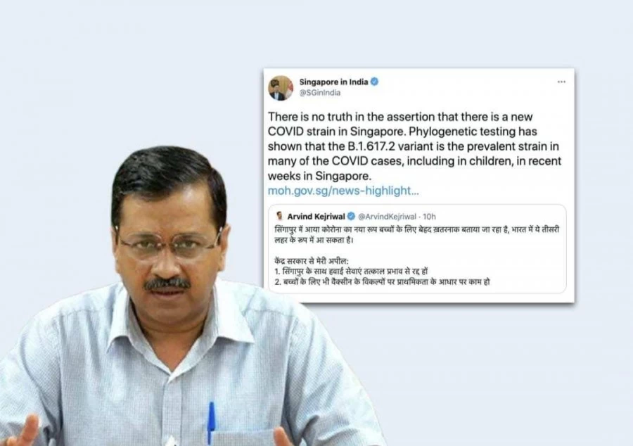 नई दिल्ली: सिंगापुर ने मंगलवार को दिल्ली के मुख्यमंत्री अरविंद केजरीवाल के उस दावे को खारिज कर दिया, जिसमें उन्होंने कहा था कि सिंगापुर में पाया गया कोरोना वायरस का नया स्ट्रेन भारत में संक्रमण की तीसरी लहर ला सकता है। सिंगापुर ने कहा है कि 'B.1.617.2'वैरिएंट हाल में आए कोरोना के कई मामलों में पाया गया है और यह भारत में ही सबसे पहले मिला था।