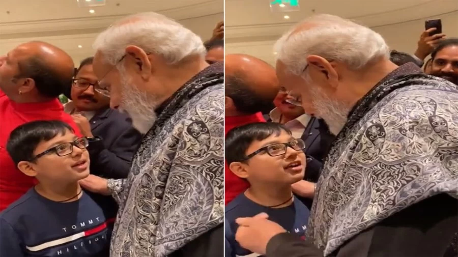 इस वीडियो (Video) में पीएम मोदी को बच्चे की सराहना करते हुए देखा जा सकता है. पीएम ने बच्चे के देशभक्ति गीत की तारीफ करते हुए कहा, 'वाह'. इसी बीच पीएम मोदी (PM Modi) गाने का मजा लेते हुए चुटकियां बजाते दिखे. भारतीय समुदायों के सदस्यों ने प्रधानमंत्री मोदी का स्वागत (Welcome) 'वंदे मातरम' और 'भारत माता की जय' के नारों की गूंज के साथ किया. पीएम मोदी ने भी सभी सदस्यों के साथ बातचीत की.