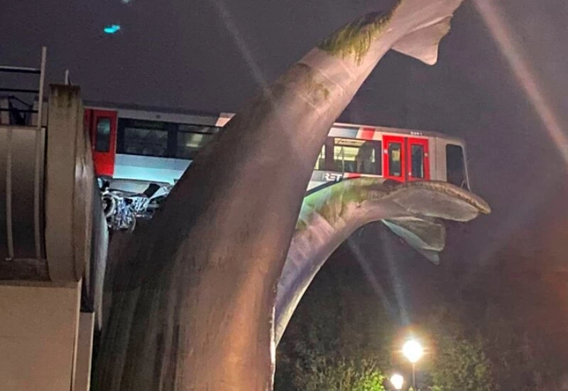 रिपोर्ट्स के मुताबिक, यह आर्ट पीस 20 साल पहले मेट्रो के पास एक पार्क में बनाया गया था। इस मूर्तिकला में दो बड़ी व्हेल मछलियों की विशालकाय पूंछ देखी जा सकती है। इनमें से एक पूंछ ने मेट्रो ट्रेन को बचा लिया है। इस मेट्रो ट्रेन के चालक की जान बच गई और उसे कोई चोट नहीं आई। हालांकि, यह ड्राइवर काफी सदमे में था। बता दें कि ट्रेन में ड्राइवर अकेला था और उसके अलावा कोई अन्य यात्री मौजूद नहीं था।
