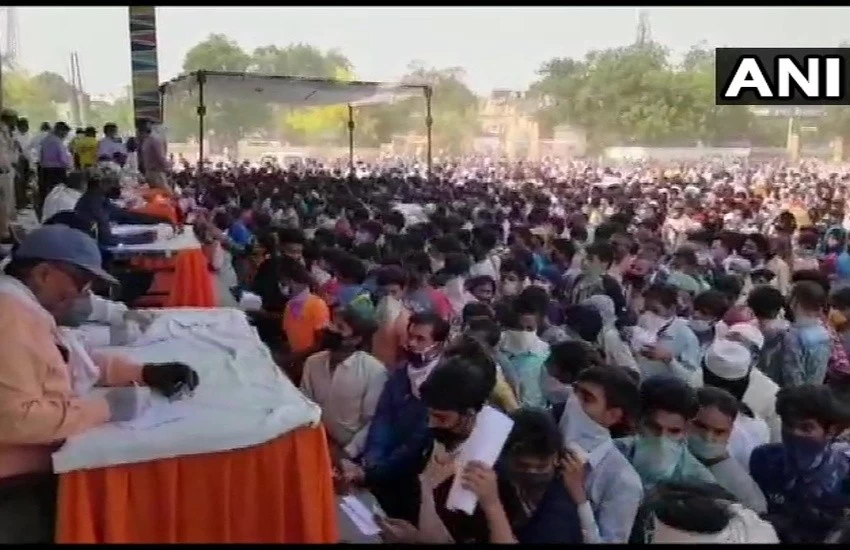 उत्तर प्रदेश के गाजियाबाद में सोमवार को सोशल डिस्टेंसिंग की धज्जियां उड़ती हुई नज़र आईं। यहां श्रमिक ट्रेन के लिए वेरिफिकेशन करवाने के लिए हजारों की संख्या में मजदूर एक साथ रामलीला मैदान में इकट्ठा हुए। यहां से आज शाम तीन श्रमिक ट्रेनें उत्तर प्रदेश के अलग-अलग इलाकों और बिहार के लिए रवाना होनी हैं।