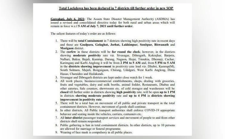 असम में अभी भी कंटेनमेंट जोन में लोगों के इकट्ठे होने पर रोक रहेगी। शादी और अंतिम संस्कार जैसे कार्यक्रमों में ज्यादा से ज्यादा 10 लोग शामिल हो सकेंगे।
