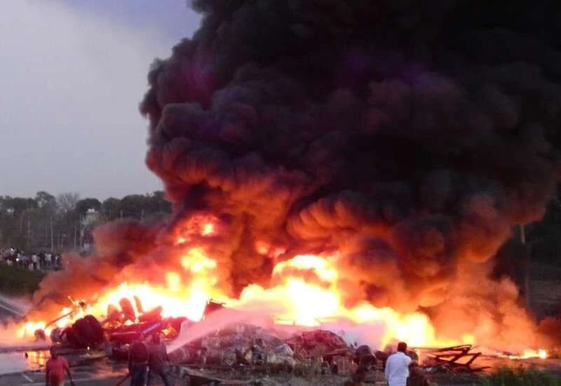 रोला करीब सौ मीटर की दूरी तक घिसटते हुए गया, इससे चिंगारियां उठी और उसमें भरे कैमिकल ने आग पकड़ ली। आग इतनी भीषण थी कि धुएं का गुबार करीब तीन किलोमीटर दूर से दिखाई पड़ रहा था। ट्रोले में रखे ड्रम में हुए धमाकों के बाद वाहनों की रफ्तार थम गई। करीब तीन किमी की कतार लग गई।