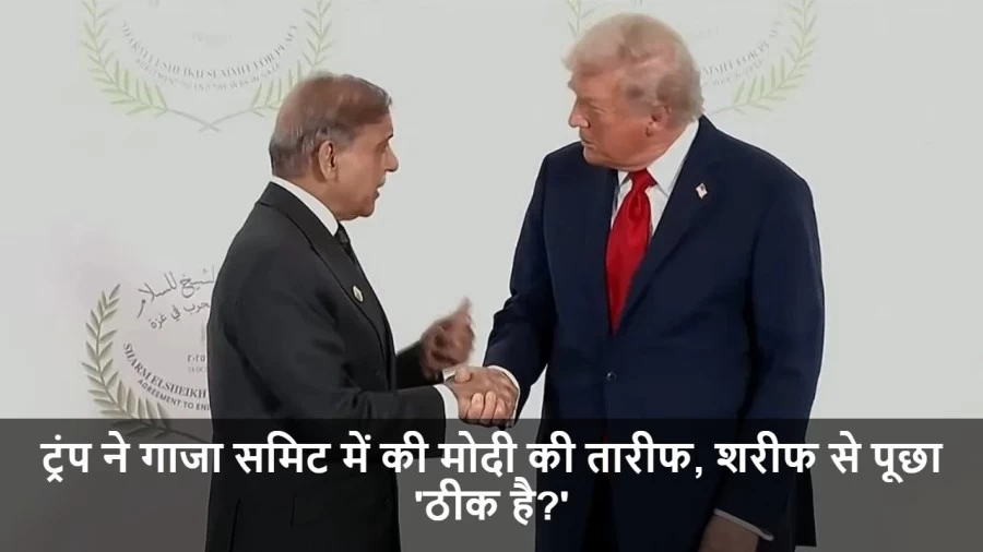 मिस्र के शर्म एल शेख शहर में आयोजित गाजा पीस समिट में एक दिलचस्प घटनाक्रम देखने को मिला. पूर्व अमेरिकी राष्ट्रपति डोनाल्ड ट्रंप ने भारतीय प्रधानमंत्री नरेंद्र मोदी की जमकर तारीफ की और उनके पीछे खड़े पाकिस्तान के प्रधानमंत्री शहबाज शरीफ से भारत-पाकिस्तान के संबंधों पर एक सीधा सवाल पूछ लिया.