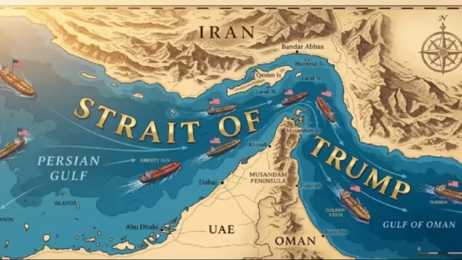 अमेरिका और ईरान के बीच शांति वार्ता को लेकर सस्पेंस बरकरार है। इस बीच अमेरिका के राष्ट्रपति डोनाल्ड ट्रंप ने सोशल मीडिया पर एक तस्वीर शेयर की है जिसमें उन्होंने स्ट्रेट ऑफ होर्मुज को स्ट्रेट ऑफ ट्रंप बताया है। अमेरिका के राष्ट्रपति डोनाल्ड ट्रंप ने गुरुवार को एक तस्वीर शेयर की जिसमें एक बदला हुआ नक्शा दिखाया गया था। इस नक्शे में 'स्ट्रेट ऑफ होर्मुज' का नाम बदलकर 'स्ट्रेट ऑफ ट्रंप' कर दिया गया था। ट्रंप ने यह तस्वीर अपने सोशल मीडिया प्लेटफॉर्म ट्रुथ सोशल अकाउंट पर बिना किसी कैप्शन के पोस्ट की और यह तस्वीर असल में 'IStandWithTrump47' नाम के एक अकाउंट ने शेयर की थी जिसमें जलमार्ग के असली नाम की जगह 'स्ट्रेट ऑफ ट्रंप' लिख दिया गया था। स्ट्रेट ऑफ होर्मुज एक संकरा लेकिन जरूरी समुद्री मार्ग है जिससे दुनिया भर में होने वाली तेल की शिपमेंट का लगभग 5वां हिस्सा गुजरता है।