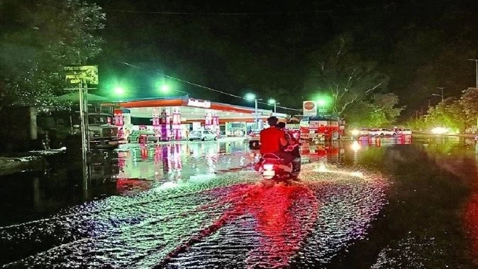 शाम को आंधी के साथ हुई तेज बारिश और ओलावृष्टि