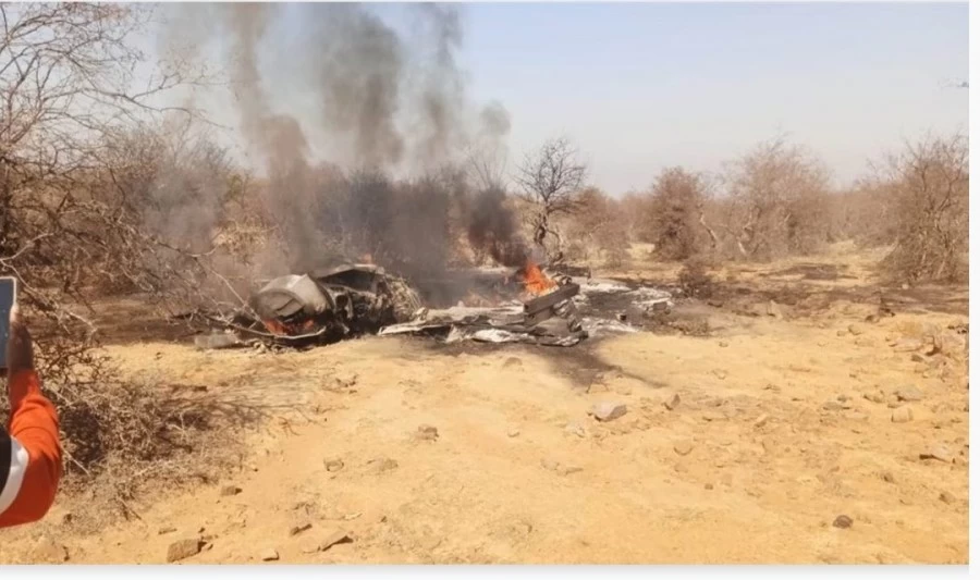 #WATCH | Rajasthan, Bharatpur | Wreckage of jet seen. Earlier report as confirmed by Bharatpur District Collector Alok Ranjan said charter jet, however, defence sources confirm IAF jets have crashed in the vicinity. Therefore, more details awaited. pic.twitter.com/005oPmUp6Z