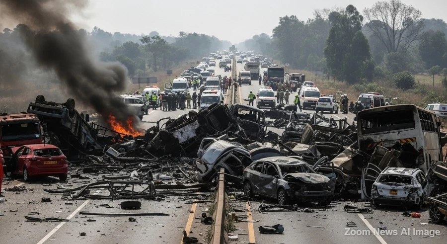 पुलिस रिपोर्टों के अनुसार, विपरीत दिशाओं से आ रही दो बसें एक साथ अन्य। वाहनों - एक लॉरी और एक कार - को ओवरटेक करने की कोशिश कर रही थीं। टक्कर से बचने के एक हताश प्रयास में, एक बस मुड़ गई, जिसके परिणामस्वरूप एक विनाशकारी आमने-सामने और साइड टक्कर हुई। इस शुरुआती प्रभाव ने एक भयावह श्रृंखला प्रतिक्रिया को जन्म दिया, जिससे अन्य वाहन भी नियंत्रण खो बैठे और पलट गए और टक्कर की तीव्रता ने घटनास्थल पर व्यापक विनाश और जानमाल का भारी नुकसान किया।