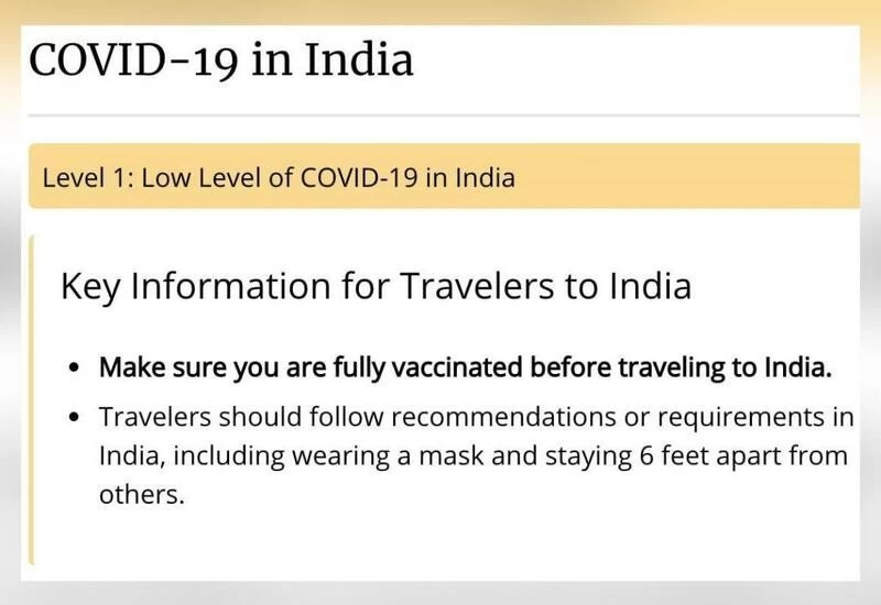 सीडीसी ने अपने स्वास्थ्य यात्रा नोटिस 'लेवल वन' में कहा, "यदि आप एफडीए (खाद्य एवं औषधि प्रशासन) अधिकृत किसी टीके की सभी खुराक ले चुके हैं, तो आपको कोविड-19 होने और गंभीर लक्षण विकसित होने का जोखिम कम हो सकता है।"