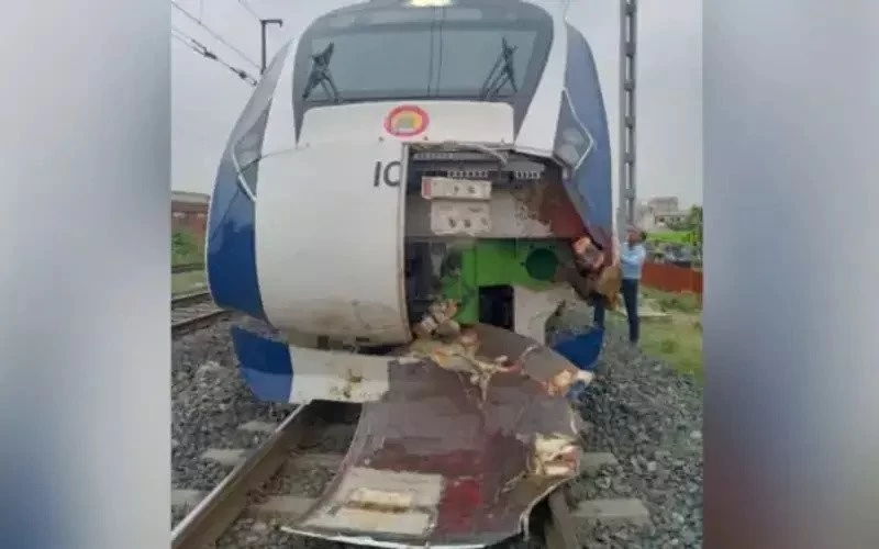 New Delhi : मुंबई से गुजरात के गांधीनगर जा रही वंदे भारत ट्रेन के साथ गुरुवार को एक दुर्घटना पेश आई। ट्रेन वातवा और मणिनगर स्टेशन के बीच भैंसों के झुंड से टकरा गई। दुर्घटना के बाद कुछ भैसों की मौत हो गई तो ट्रेन के इंजन का कुछ हिस्सा टूट गया। वेस्टर्न रेलवे के सीनियर पीआरओ जेके जयंत ने बताया कि हादसा सुबह करीब 11:15 पर हुआ।