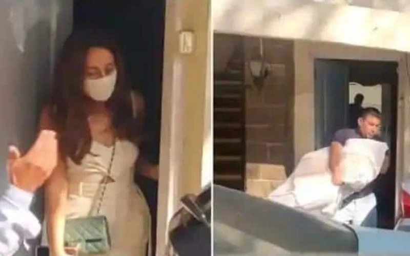 बॉलीवुड: एक्टर वरुण धवन से शादी से पहले नताशा दलाल को घर से निकलते देखा गया है। नताशा दलाल और उनके परिवार को वेडिंग वेन्यू अलीबाग के लिए निकलते देखा गया है। नताशा और उनकी फैमिली शादी के लिए निकलने को तैयार हो रहे थे। नताशा दलाला सफेद कलर के जम्पसूट और इसी रंग का मास्क पहने देखा गया है। इसके अलावा उन्होंने हरे रंग का हैंडबैग ले रखा था। इसके अलावा उनकी मां और परिवार के अन्य लोगों को भी तैयारी करते हुए और कार में बैठते देखा गया है। इसके अलावा कुछ स्टाफ मेंबर भी बैगों में बड़े पैमाने पर कपड़े लेकर जाते दिखे। इसके अलावा नताशा की शादी की ड्रेस को भी कार में रखते दिखे।