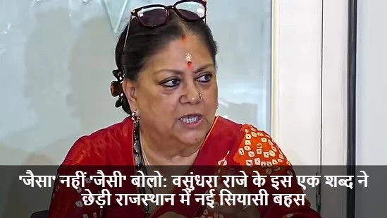 Vasundhara Raje: पूर्व मुख्यमंत्री वसुंधरा राजे ने एक जनसभा में कार्यकर्ताओं के नारों को बीच में रोककर उन्हें 'जैसा' की जगह 'जैसी' बोलने को कहा, जिसने राजस्थान की राजनीति में एक नई बहस छेड़ दी है। यह घटना गुरुवार (9 अक्टूबर) को चूरू के रतनगढ़ में हुई, जब राजे पूर्व नेता प्रतिपक्ष रामेश्वर डूडी के निधन पर शोक व्यक्त कर बीकानेर से लौट रही थीं।