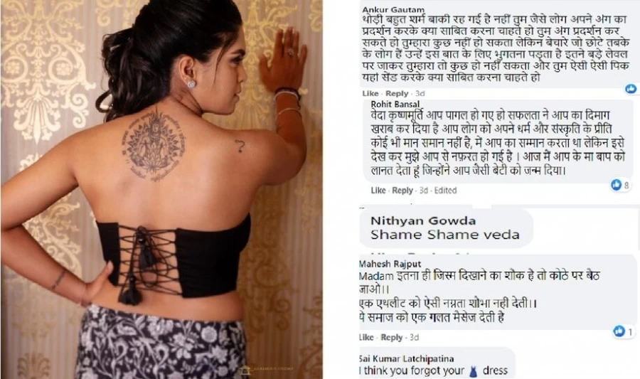 इन तस्वीरों में वेदा कृष्णामूर्ति का टैटू भी दिख रहा है। उन्होंने अपनी पीठ पर महादेव का टैटू बनवाया है। इस टैटू के पीछे भी लोग उन्हें खरी खोटी सुना रहे हैं और बुरी तरह ट्रोल कर रहे हैं।