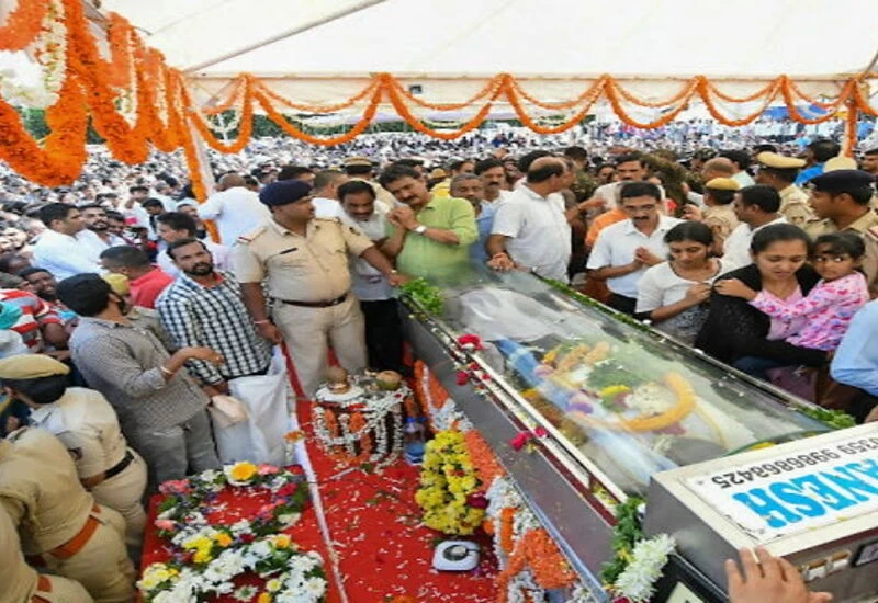 मेंगलुरु. देश की सबसे बड़ी कॉफी चेन कैफे कॉफी डे (सीसीडी) के फाउंडर वीजी सिद्धार्थ का अंतिम संस्कार चिकमागलुर जिले में पैतृक गांव चेतनहाली में किया गया। उनके बड़े बेटे अमर्त्य ने उन्हें मुखाग्नि दी। इस दौरान सैकड़ों लोग मौजूद थे। वोक्कालिगा समुदाय की परंपराओं के अनुसार अंतिम संस्कार किया गया। कर्नाटक के पूर्व मुख्यमंत्री एसएम कृष्णा और उनकी पत्नी प्रेमा भी दामाद को श्रद्धांजलि देने पहुंचीं।