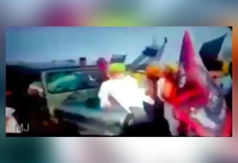 न ही कोई किसान 'गाड़ी' पर पथराव कर रहा था