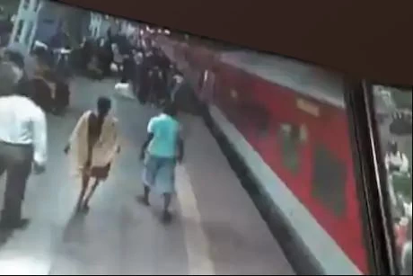वीडियो में देखा जा सकता है कि एक शख्स प्लेटफॉर्म और ट्रेन के बीच गैम में शख्स गिर रहा था, तभी आरपीएफ दो जवानों और एक यात्री ने दौड़ते हुए महिला को खींच लिया और उसे ट्रेन से दूर प्लेटफॉर्म पर खींचने में कामयाब रहे. इस घटना का वीडियो रेलवे स्टेशन पर लगे हुए सीसीटीवी कैमरे में कैद हो गया. आरपीएफ के जवानों की सतर्कता के कारण शख्स की जान बच गई. देखें VIDEO...