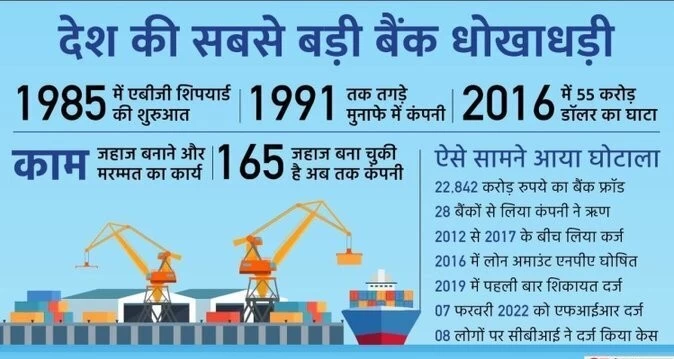 अब तक बैंक धोखाधड़ी के मामले में विजय माल्या और नीरव मोदी का नाम ही सबसे ऊपर चल रहा था। सरकार का पूरा फोकस भी इन्हीं दोनों पर था, लेकिन इस बीच एक नया घोटाला सामने आया और माल्या-मोदी को कहीं पीछे छोड़ दिया। जी हां, हम बात कर रहे हैं एबीजी शिपयार्ड कंपनी द्वारा किए गए घोटाले की। यह बैंक फ्रॉड करीब 23 हजार करोड़ का है यानी विजय माल्या 9 हजार करोड़ और नीरव मोदी 14 हजार करोड़, दोनों की कुल धोखाधड़ी के बराबर। आइए जानते हैं अब तक के सबसे बड़े बैंक फ्रॉड के बारे में सबकुछ।