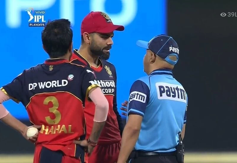 इस पर चहल और बैंगलोर के अन्य खिलाड़ियों ने जोरदार अपील की, जिसे अंपायर ने नकार दिया। इसके बाद विराट ने तुरंत डीआरएस लिया। बाद में टीवी रिप्ले में देखने के बाद मैदानी अंपायर वीरेंद्र शर्मा को अपना फैसला बदलना पड़ा, जिससे विराट का डीआरएस लेना सही साबित हुआ। जैसे ही यह फैसला आया, वैसे ही अंपायर और विराट के बीच बहस होते देखी गई। हालांकि अच्छी बात यह हुई कि अंपायर और विराट के बीच बातचीत का अंत एक स्माइल के साथ हुआ।