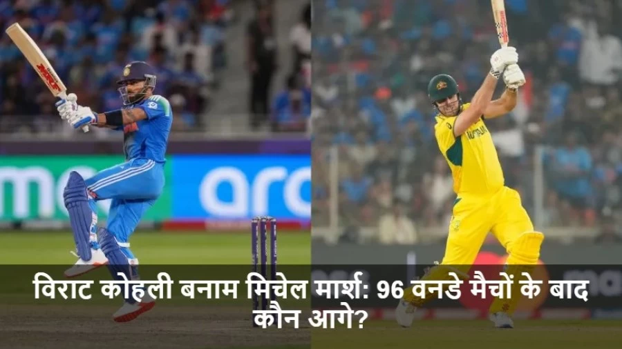 टीम इंडिया के दिग्गज बल्लेबाज विराट कोहली और ऑस्ट्रेलिया के धाकड़ ऑलराउंडर मिचेल मार्श, दोनों ही अपनी-अपनी टीमों के लिए अहम खिलाड़ी हैं। आइए जानते हैं 96 वनडे मैचों के बाद इन दोनों दिग्गजों का प्रदर्शन कैसा रहा।