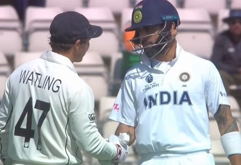 IND vs NZ WTC Final | वर्ल्ड टेस्ट चैंपियनशिप फाइनल (World Test Championship Final) के आखिरी दिन भले ही कोहली (Virat Kohli) भारतीय टीम के लिए बड़ा स्कोर नहीं बना सके लेकिन क्रीज पर उतरने से पहले उन्होंने कुछ ऐसा किया जिसकी तारीफ हो रही है। दरअसल ऐतिहासिक टेस्ट मैच के आखिरी दिन को शुरूआत में जब कोहली क्रीज पर बल्लेबाजी करने आए तो सबसे पहले उन्होंने न्यूजीलैंड के विकेटकीपर बीजे वॉटलिंग (BJ Watling)के पास गए और उनसे हाथ मिलाते हुए उन्हें आगे की लाइफ के लिए शुभकामनाएं दी। दरअसल वॉटलिंग अपना आखिरी टेस्ट मैच खेल रहें हैं और यह दिन उनके टेस्ट करियर का आखिरी दिन है। ऐेसे में कोहली ने ऐसा करके स्पोर्ट्समैनशिप का एक शानदार उदाहरण पेश करते हुए करोड़ों भारतीय फैंस और पूरे क्रिकेट वर्ल्ड का दिल जीत लिया।