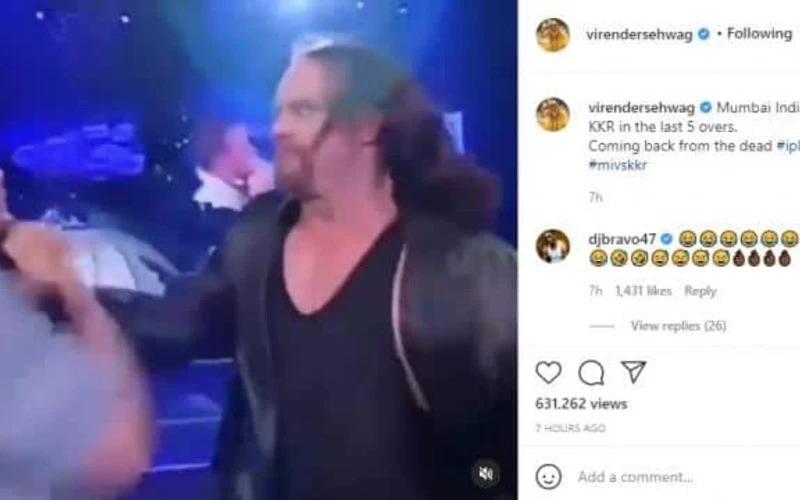 इस वीडियो में अंडरटेकर ने कॉफिन बॉक्स से निकलर रैंडी ऑर्टन की जमकर धुनाई की है। सहवाग ने इस वीडियो से ही मुंबई इंडियंस की जीत की तुलना की है। इस वीडियो को शेयर करते हुए सहवाग ने लिखा, 'मुंबई इंडियंस ने केकेआर के साथ आखिरी के पांच ओवरों में यही किया, मरने के बाद वापसी।' सहवाग का शेयर किया गया यह वीडियो अब खूब वायरल हो रहा है।