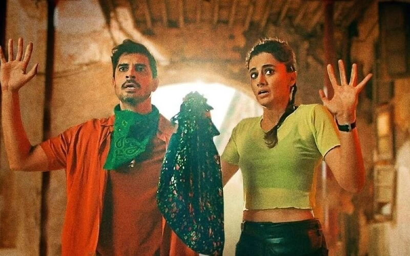 सो कहानी में तो कुछ है ही नहीं, लेकिन किरदार काफी हैं, सावी के पापा हैं जो गे हैं, एक टैक्सी ड्राइवर रॉबर्ट है, जिसका गर्लफ्रेंड जूलिया की शादी हो रही होती है, एक पुलिस इंस्पेक्टर है जो हर बार सावी के रास्ते में आ जाता है, एक ज्वैलर है जिसके दोनों बेटे उसे लूटना चाहते हैं, एक डॉन है जो सत्या को 50 लाख की डिलीवरी लाने भेजता है, सावी के एक अंकल हैं जो कुछ बोलते नहीं हैं और सावी (तापसी) के घर का बाथरूम है, जिसमें टॉयलेट सीट के ऊपर एक शीशा लगा है, जिसके सामने ड्रग्स लेते हुए तापसी के सीन से हर बार कहानी शुरू होती है.