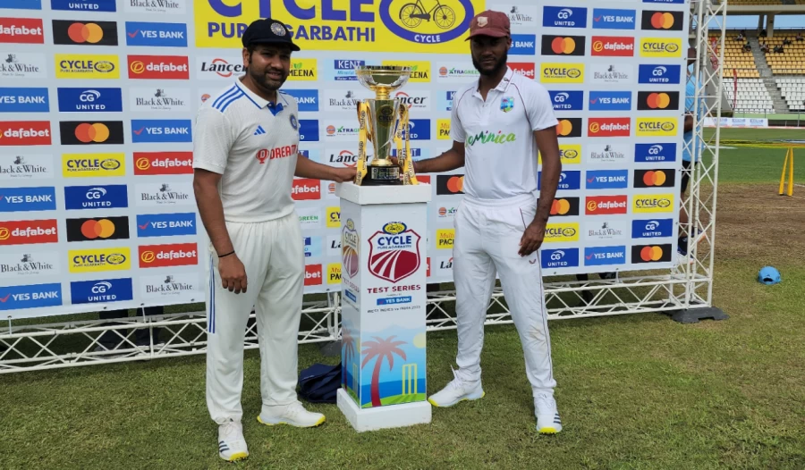 IND vs WI: भारत और वेस्टइंडीज के बीच दो टेस्ट मैचों की सीरीज का पहला मुकाबला डोमिनिका के विंडसर पार्क पर खेला जा रहा है। वेस्टइंडीज के कप्तान क्रैग ब्रेथवेट ने टॉस जीतकर पहले बल्लेबाजी करने का फैसला किया है। वेस्टइंडीज की ओर से एलिक एथनॉज डेब्यू कर रहे है। वहीं भारत की ओर से यशस्वी जायसवाल और ईशान किशन डेब्यू कर रहे हैं। दोनों टीमें चार साल बाद टेस्ट में एक-दूसरे का सामना कर रही हैं। आखिरी बार दोनों टीमें साल 2019 में आमने-सामने हुई थीं। कैरेबियाई टीम पिछले 21 साल से टीम इंडिया को टेस्ट में नहीं हरा सकी है। टीम को भारत के खिलाफ आखिरी जीत 18 मई 2002 को किंग्स्टन में मिली थी।