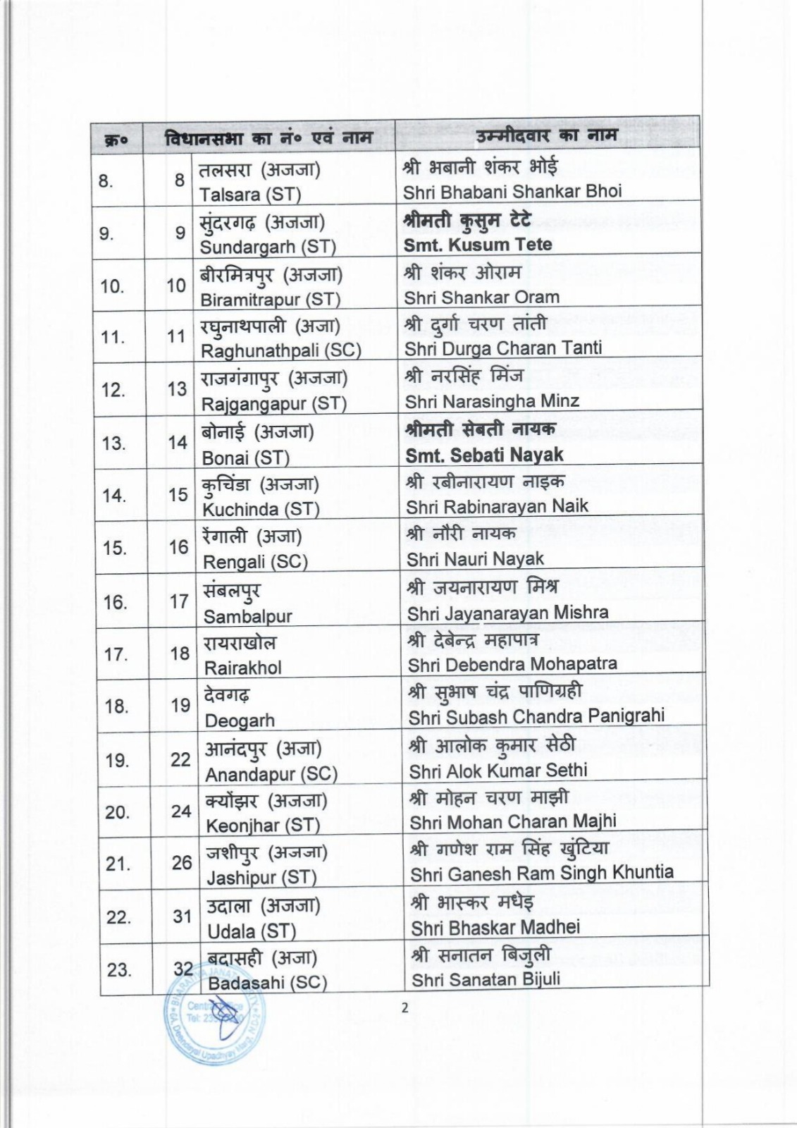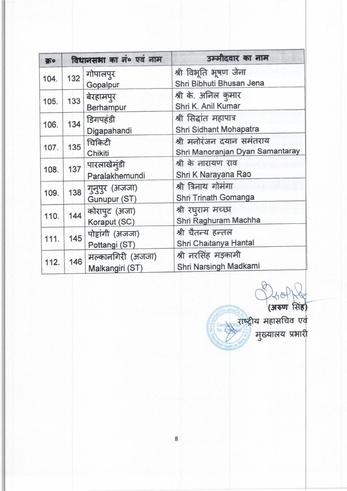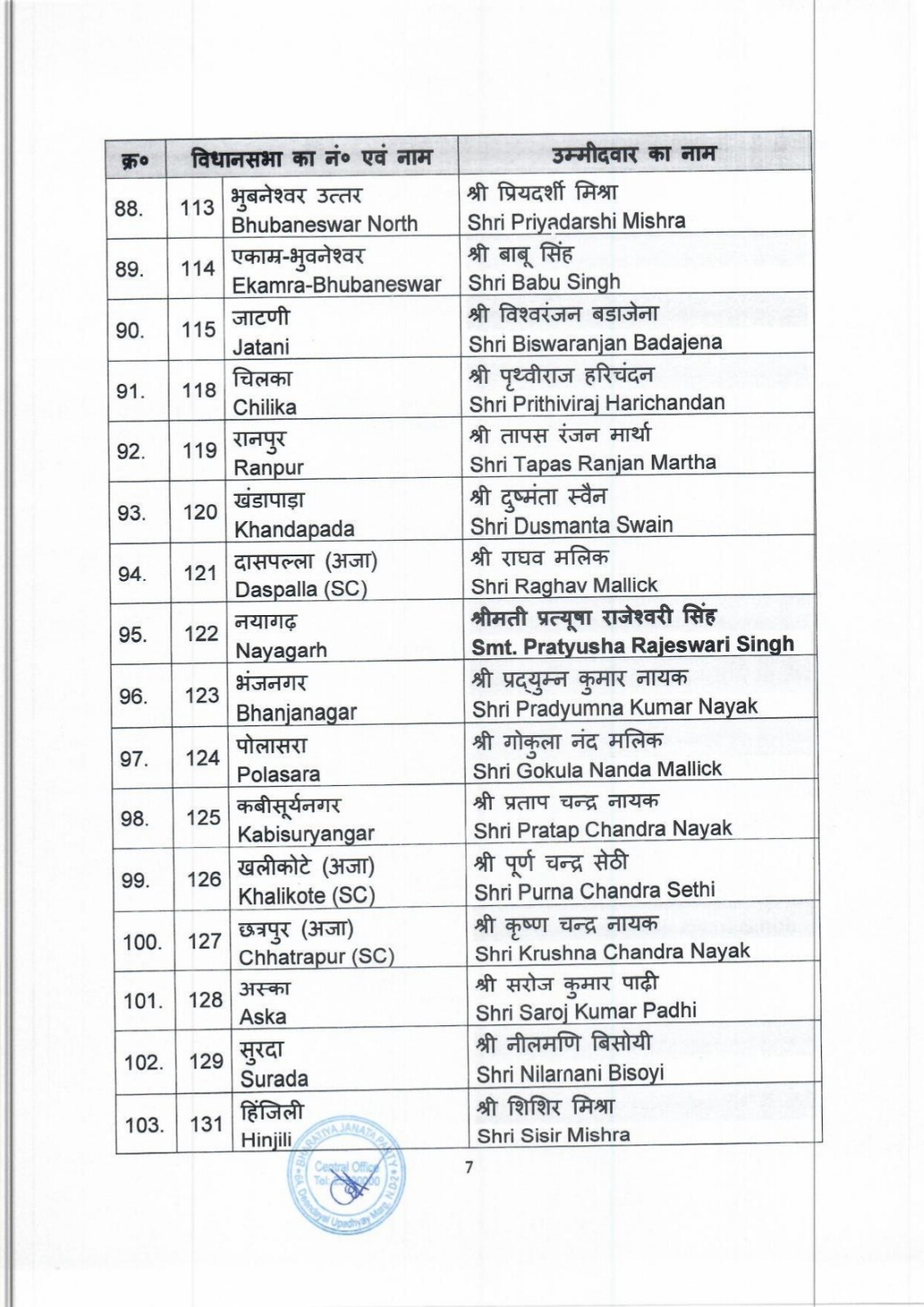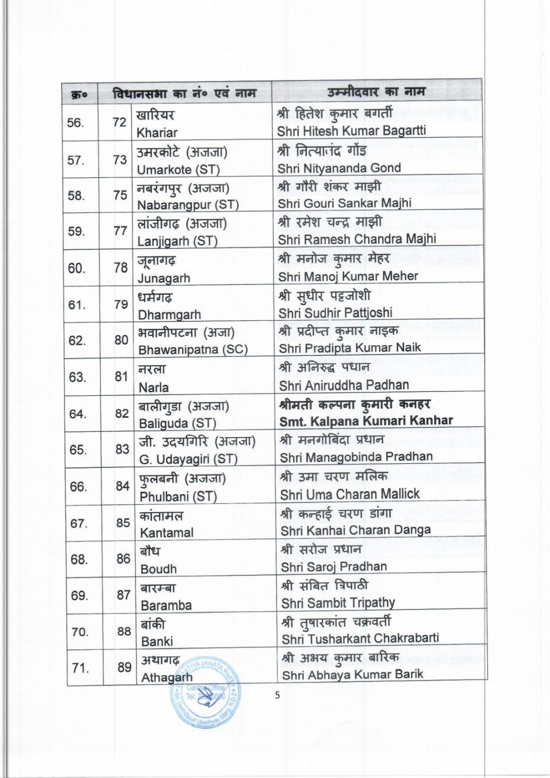 Odisha Assembly Election: Along with the Lok Sabha elections 2024, Odisha Assembly elections are going to be held. Today BJP has released the list of its candidates for 112 seats in the state. In this list, BJP has made Govardhan Bhuye the candidate of Padampur. At the same time, Sanat Kumar has been given a chance from Bijepur. For information, let us tell you that voting for Odisha Assembly elections is to be held in 4 phases. The first phase is starting on May 23, in which voting is to be held on 28 assembly seats.Announcement of names of 112 candidatesBJP has today announced the names of its candidates for 112 seats. Apart from Govardhan Bhuye, Sanat Kumar, Ashwini Kumar Sarangi from Bargarh has been given a chance in this list. At the same time, Nihar Ranjan Mahananda from Attabira (SC), Erasis Acharya from Bhatli, Suresh Pujari from Brajrajnagar and Tankadhar Tripathi from Jharsuguda have been fielded. Check the list below to see the names of other BJP candidates...