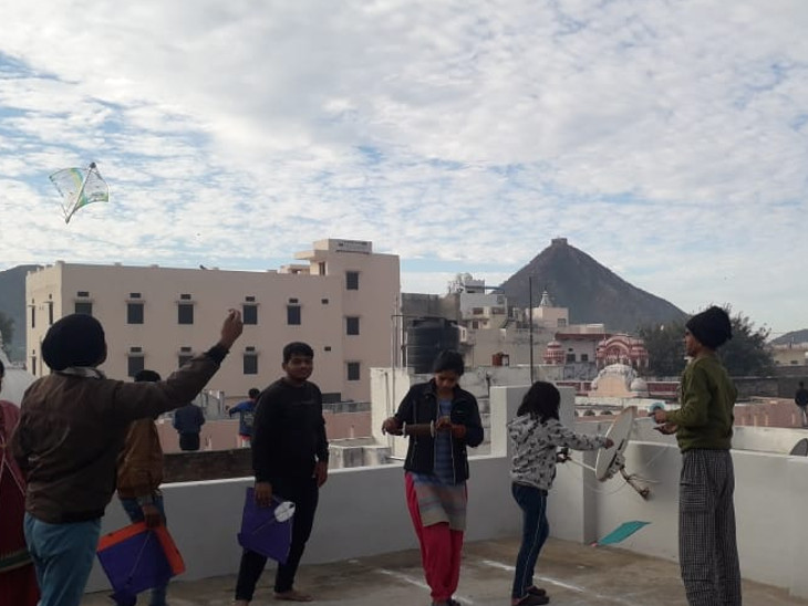 अजमेर:अजमेर की धार्मिक नगरी पुष्कर का माहौल पूरी तरह बदला हुआ है। यहां पुष्कर सरोवर तड़के से ही आबाद हो गया था। मंदिरों में श्रद्धालुओं की नियमित संख्या कई गुना दिखाई दे रही है। पुष्कर सरोवर में स्नान-ध्यान और मंदिरों में प्रभु की आराधना का सिलसिला लगातार चल रहा है।पतंगबाजी- अभी तक जयपुर के बाद सबसे अधिक पतंगबाजी यहीं नजर आती है। छतों पर बच्चे-बड़े और महिलाएं भी हैं। गाने बज रहे हैं और डांस भी चल रहे हैं। पतंग की डोर पतंग को आसमान की ओर ले जाने की जद्दोजहद में है।